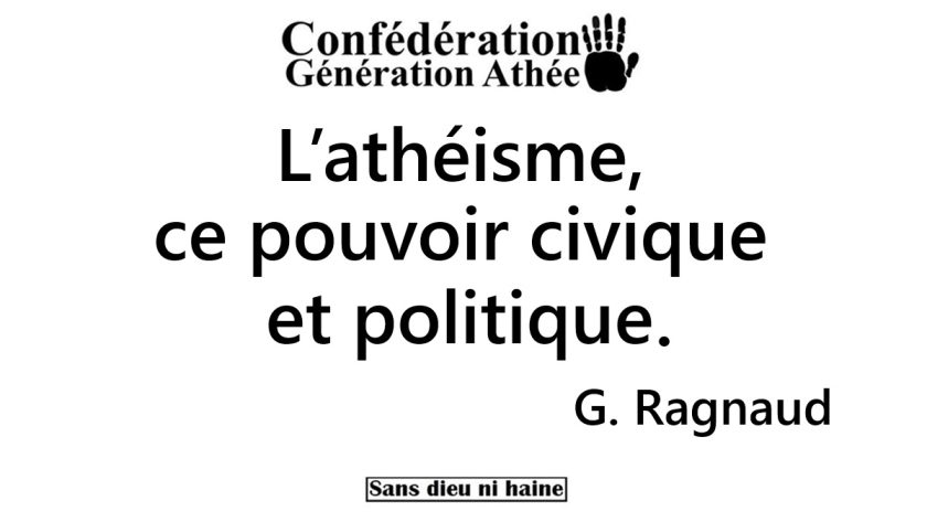 Comme vous l’avez compris, nous, athées, quels que soient nos choix politiques, avons entre nos mains le pouvoir de faire reculer les religions et toutes celles et ceux qui en tirent du pouvoir. L’enjeu n’est pas de créer une force athée monolithique, mais de faire exister l’athéisme comme une résistance civique consciente de son poids, politiquement visible en tant que majorité convictionnelle.