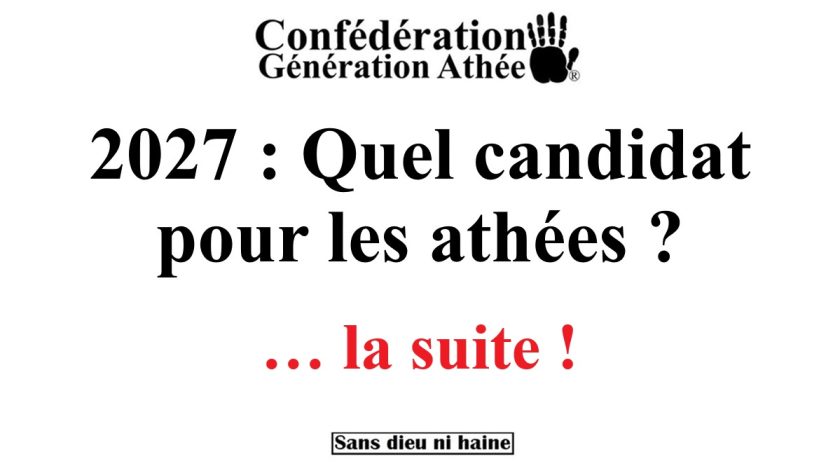 Aucun de ces candidats n’incarne encore un véritable projet pour les athées. Mais certains profils apparaissent plus compatibles avec les valeurs portées par Génération Athée : Ruffin, Cazeneuve et Autain à gauche, Philippe et Attal au centre, avec plus de réserve. Les autres (Retailleau, Dupont-Aignan, Villepin) s’inscrivent dans une vision conservatrice ou traditionnelle, éloignée des attentes d’un électorat athée qui ne veut plus être spectateur, mais acteur de son avenir politique.